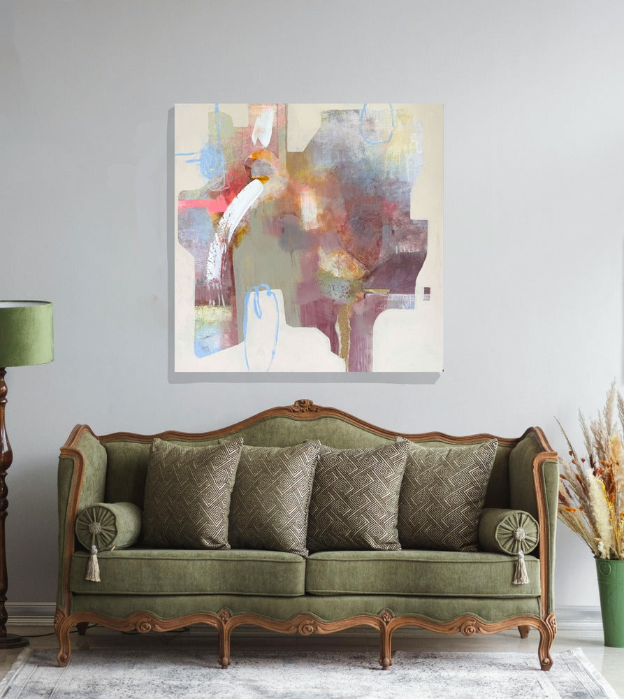 This abstract mixed media painting blends layered textures, earthy tones, and gestural brushstrokes to evoke a sense of movement and depth. Balancing structure and spontaneity, this piece invites quiet reflection through rich color and subtle forms.