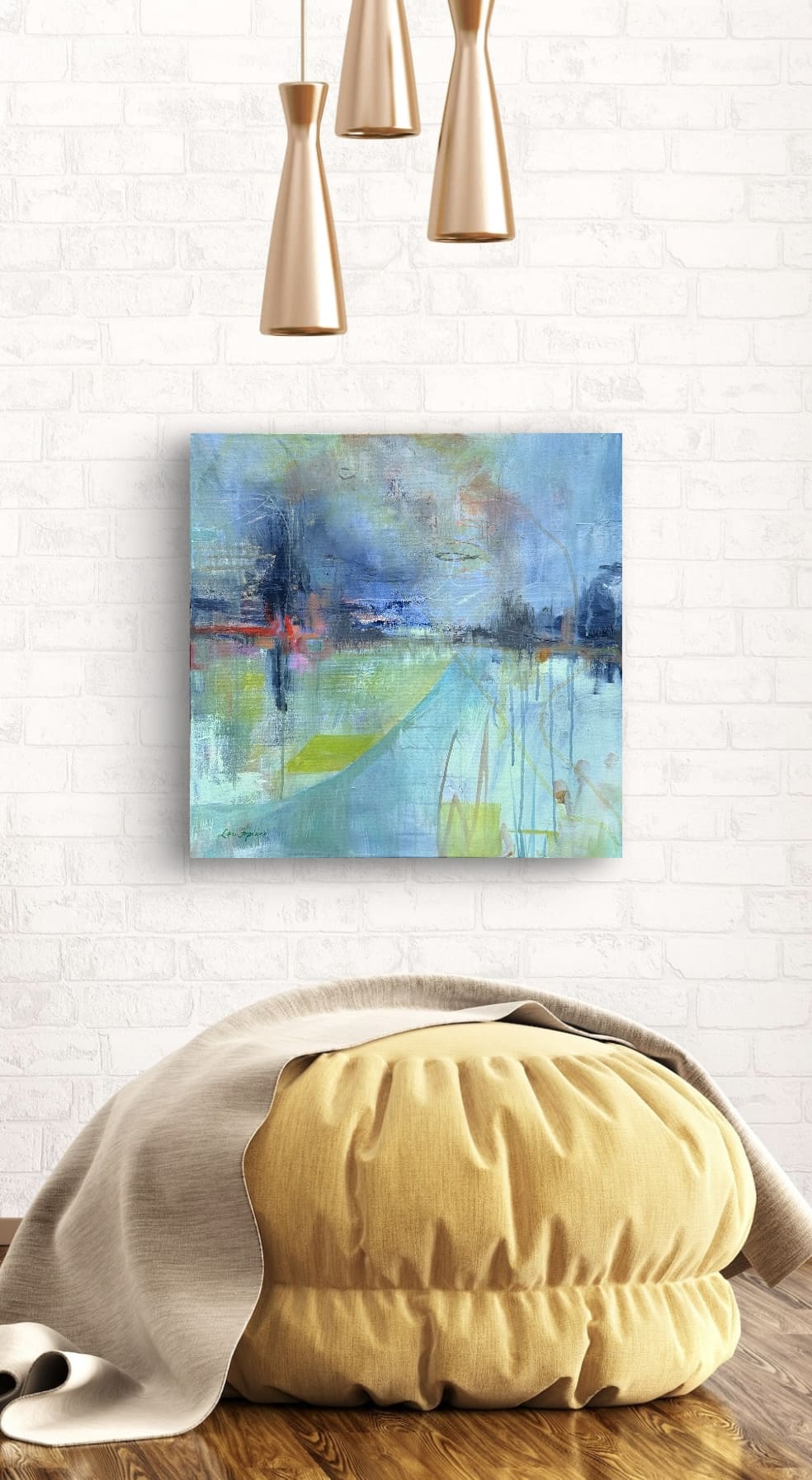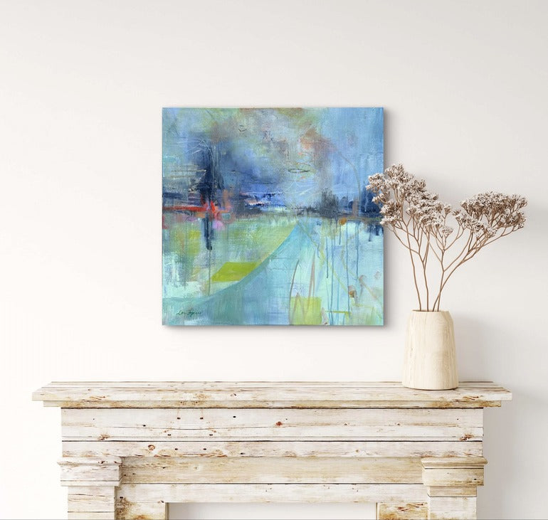 20" x 20" x 0.75" acrylic on canvas. UNFRAMED. Any images showing mats or frames are for illustrative purposes only.